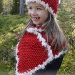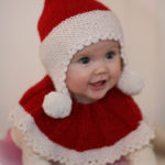 Med julen kommer den kolde tid. Hold barnet varmt med det julet sæt bestående af pandebånd og en lille poncho. Det er strikket i rødt med hvide kanter, som er det klassiske juleudtryk. Det er ikke en strikket nissehue, men derimod et pandebånd. Køb strikkekit til julesætter her.